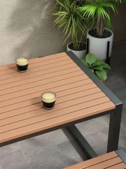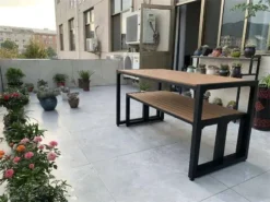 • Chất liệu: Khung sắt hộp sơn tĩnh điện chống gỉ + gỗ nhựa ngoài trời WPC.